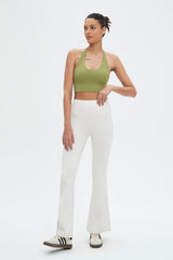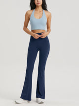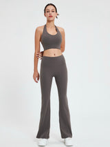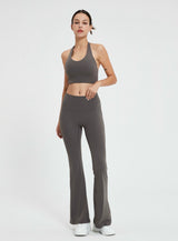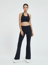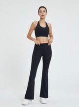 - Flared bottoms offer a nod to classic yoga aesthetics.